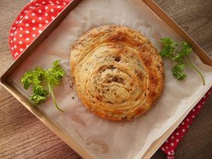 Press gently,place in a baking tray lined with butter paper and prick it with fork and apply milk with brush (makes 3).