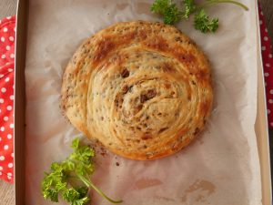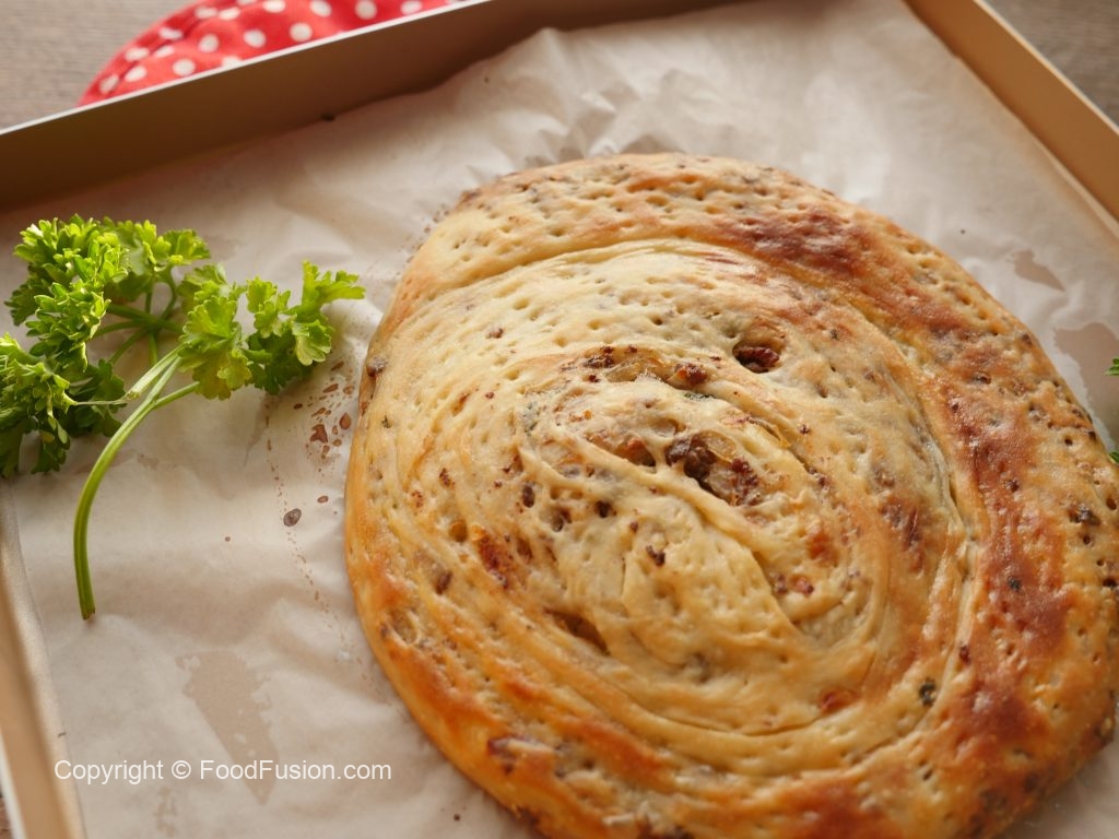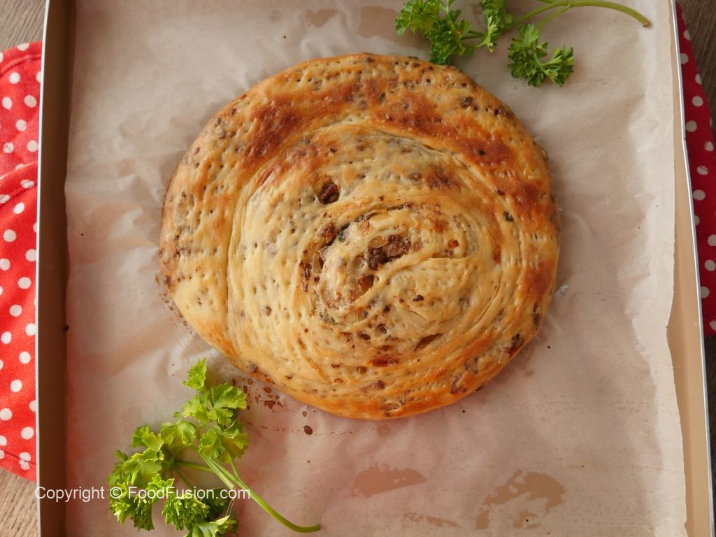 In frying pan,place afghani fateer qeema,press gently and prick with fork and brush milk,cover and cook on very low flame for 10-12 minutes then flip and apply melted butter and cook from both sides until done.