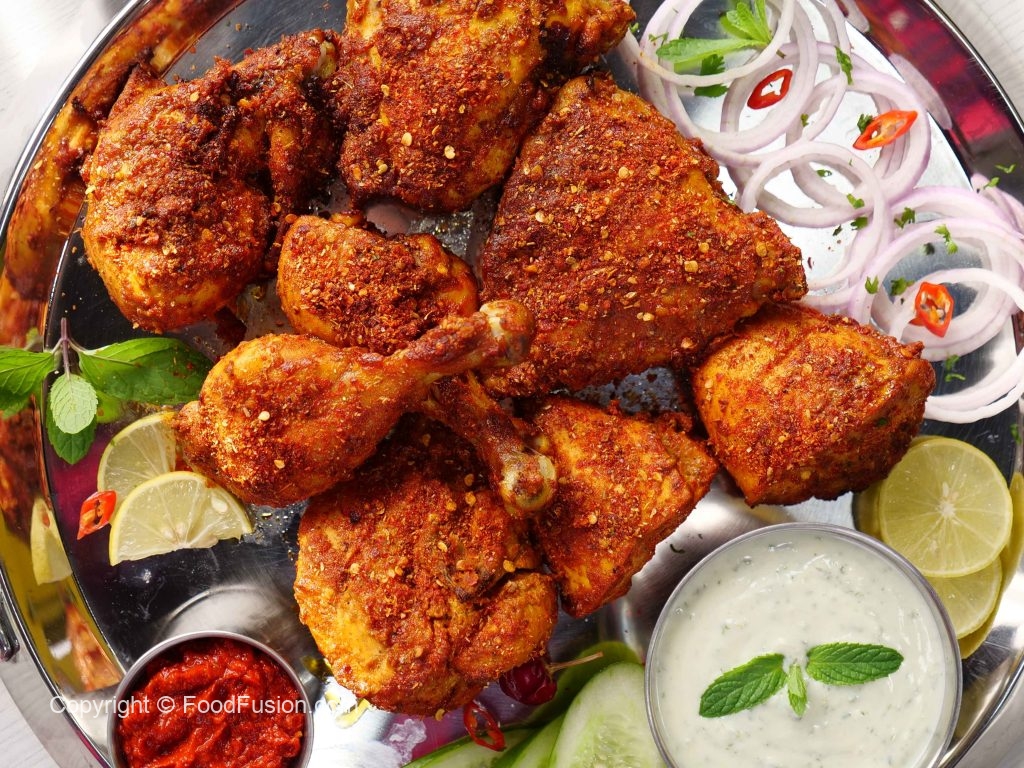 -Place marinated chicken pieces on oven grill & sprinkle prepared spice mix.