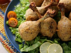 -Now coat drumsticks with all-purpose flour & dip in whisked egg.