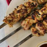 -Thread chicken pieces on metal skewer (makes 5 skewers).