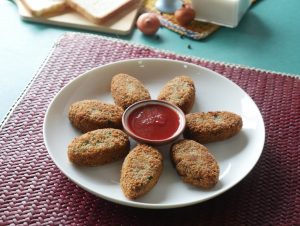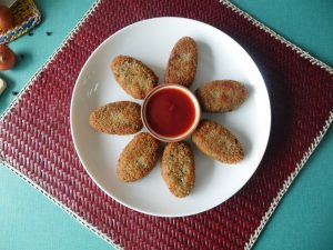 Grease hands with oil,take a mixture (50g) and make cutlets of equal sizes & refrigerate for 15-20 minutes.