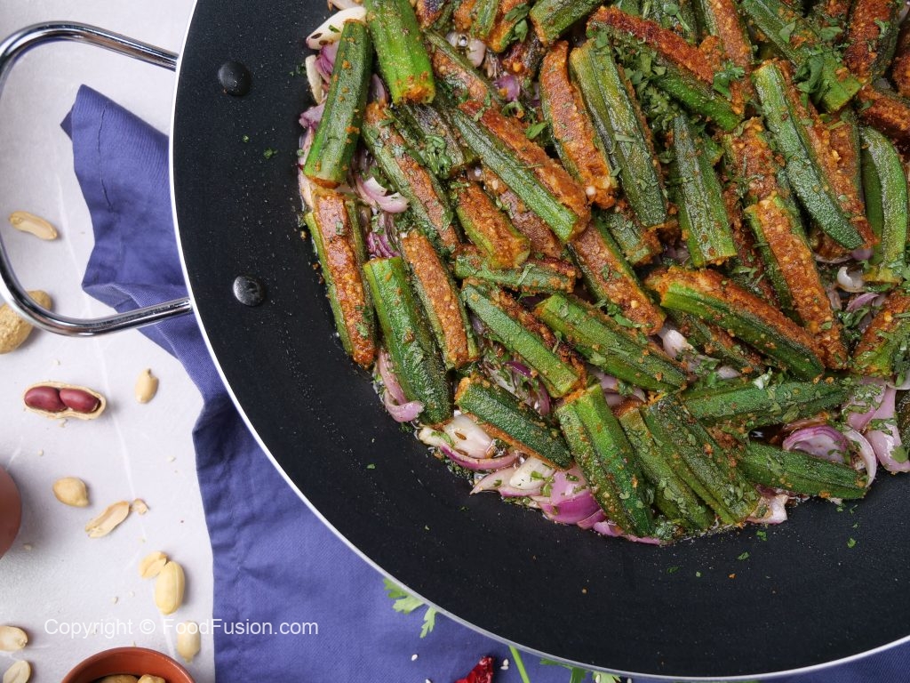 -Add stuffed okra,fresh coriander,cover & cook on low flame for 4-5 minutes & serve!