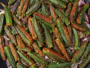 -In a frying pan,add cooking oil,stuffed okra & cook on low flame for 12-15 minutes & set aside.