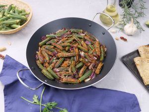 -Frying pan mein cooking oil aur stuffed bhindi dal ker halki acch per 12-15 minutes kliya paka lein & side per rakh dein.