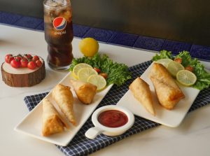 Take samosa wraps,apply flour paste and make pocket,add chicken filling in the center and fold into the shape of cone and apply flour mixture on the edges and bring the edges together and seal the edges properly (makes 14-15).