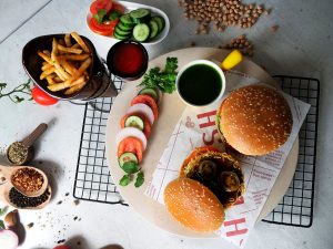 Burger bun mein green chilli sauce dal ker pheela lein,tamatar,kheera,fried patty,jalapeno slices aur tamarind sauce dal dein.