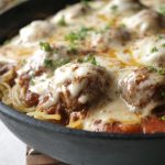 Add prepared meatballs with sauce,add cheddar cheese,mozzarella cheese & red chilli crushed,cover & cook on low flame until cheese melts (4-5 minutes).