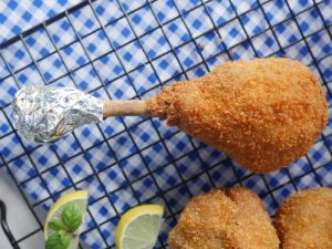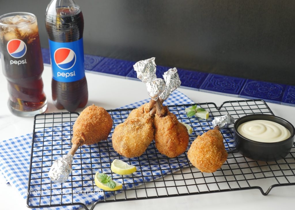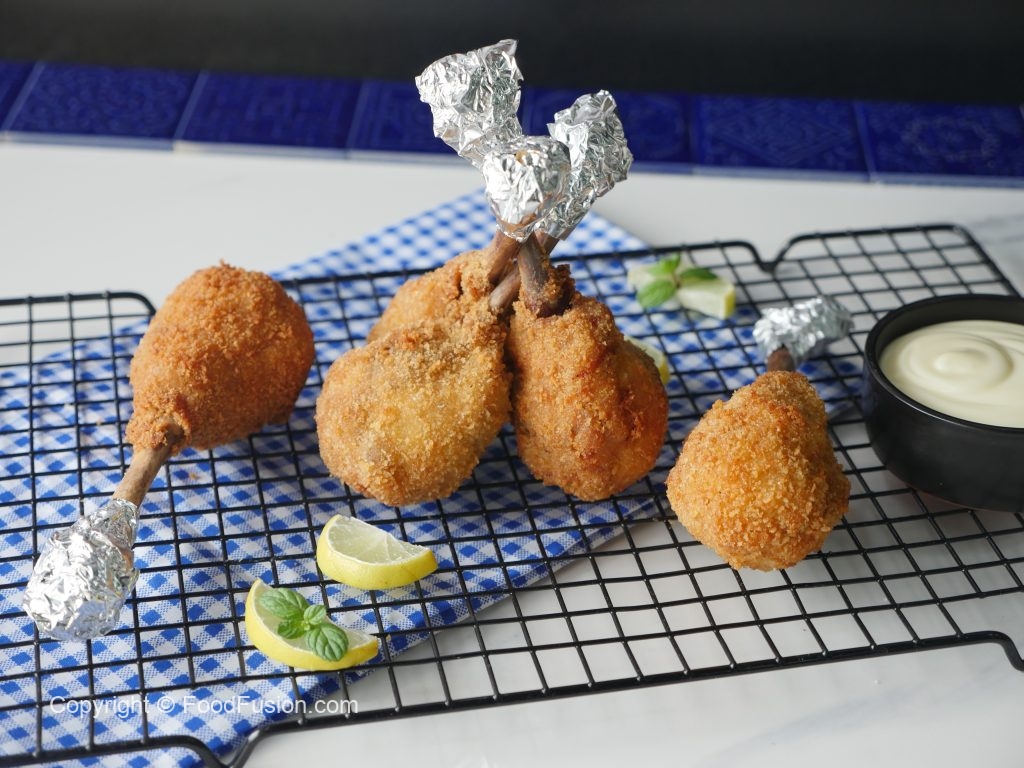 Ab chicken lollipops ko maida ka mixture mein coat karein aur pheetay hoye anday mein dip ker lein phir breadcrumbs mein coat ker lein.