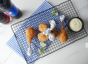 Now coat chicken lollipops in dry flour mixture,dip into beaten eggs then coat in breadcrumbs.