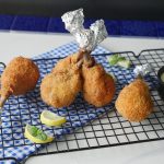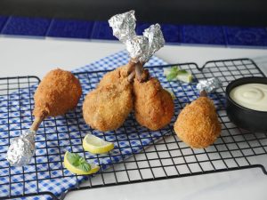 Stuffed chicken lollipops with cheddar cheese cube and mince stuffing & press tightly.