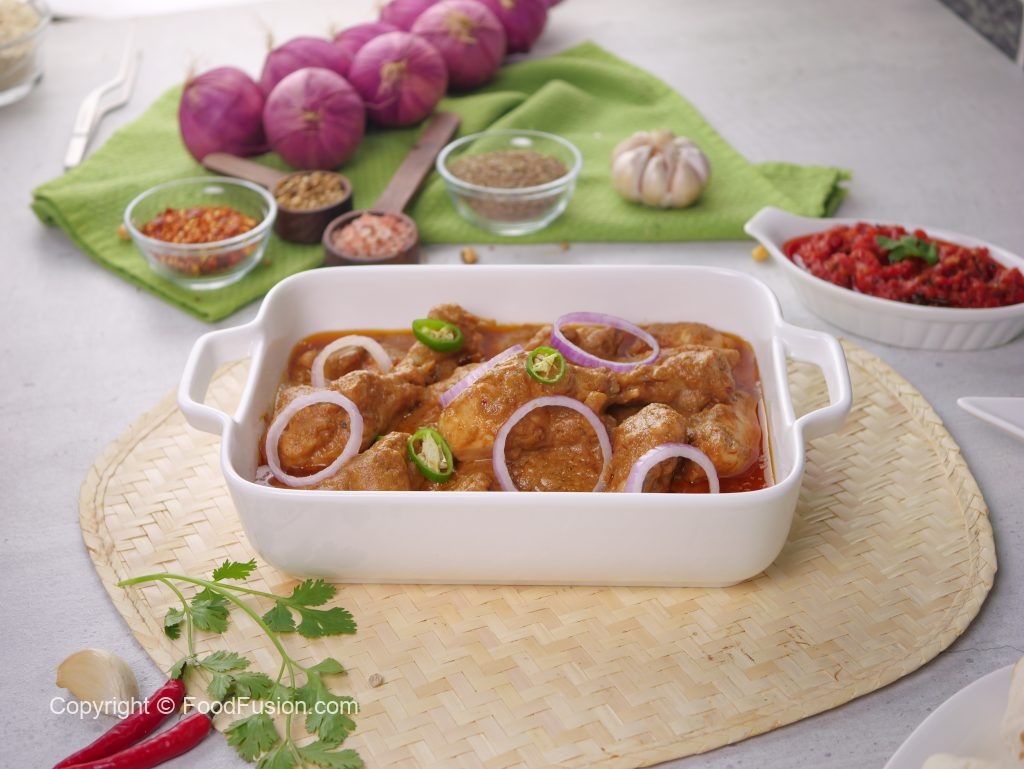 -Pani dal ker ache tarhan mix karein aur dhak ker halki ancch per chicken gul janay tak paka lein (25-30 minutes) phir tez ancch per oil alag ho janay tak paka lein & chulha bund ker dein.