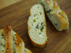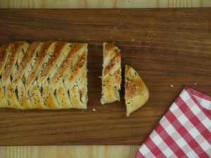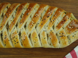 Put dough in a baking tray, apply egg-wash,sprinkle nigella and sesame seeds then bake in a preheated oven at 180 C for about 20-25 minutes.