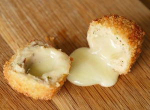 -Take a mixture,grease working surface with oil,spread the mixture and place mozzarella cheese/ cheddar cheese cubes,cover with mixture and make a ball.
