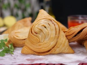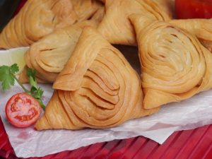 -In a wok,heat cooking oil & fry samosa on low flame until golden & crispy.