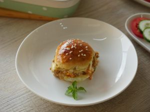 Burger buns ko knife ki madad sa cut ker lein.