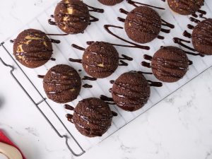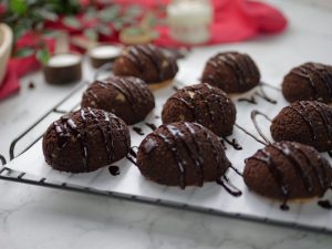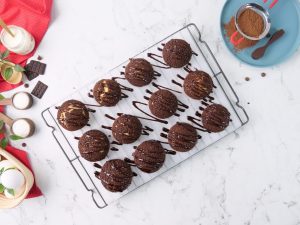 -Transfer craquelin rounds on choux pastry & bake in preheated oven at 190C for 35 minutes (on both grills).