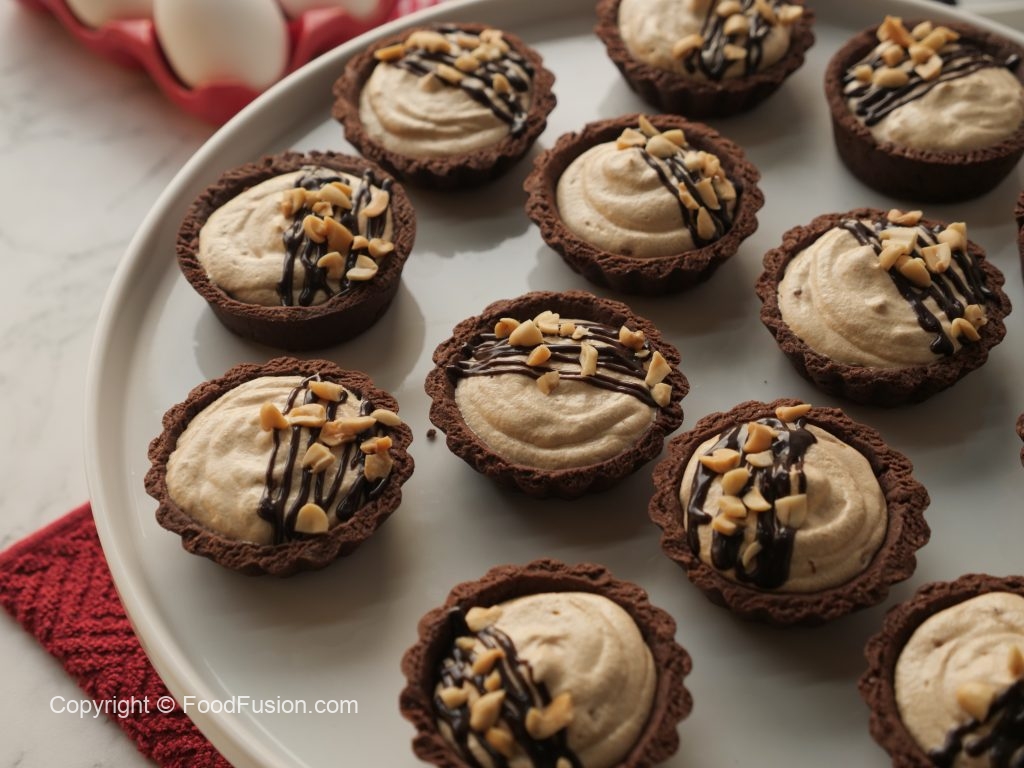 -Fill tarts with peanut butter tart filling,garnish with chocolate ganache & peanuts.