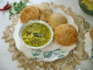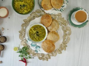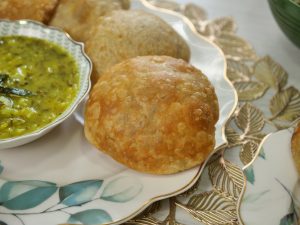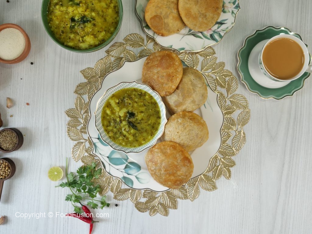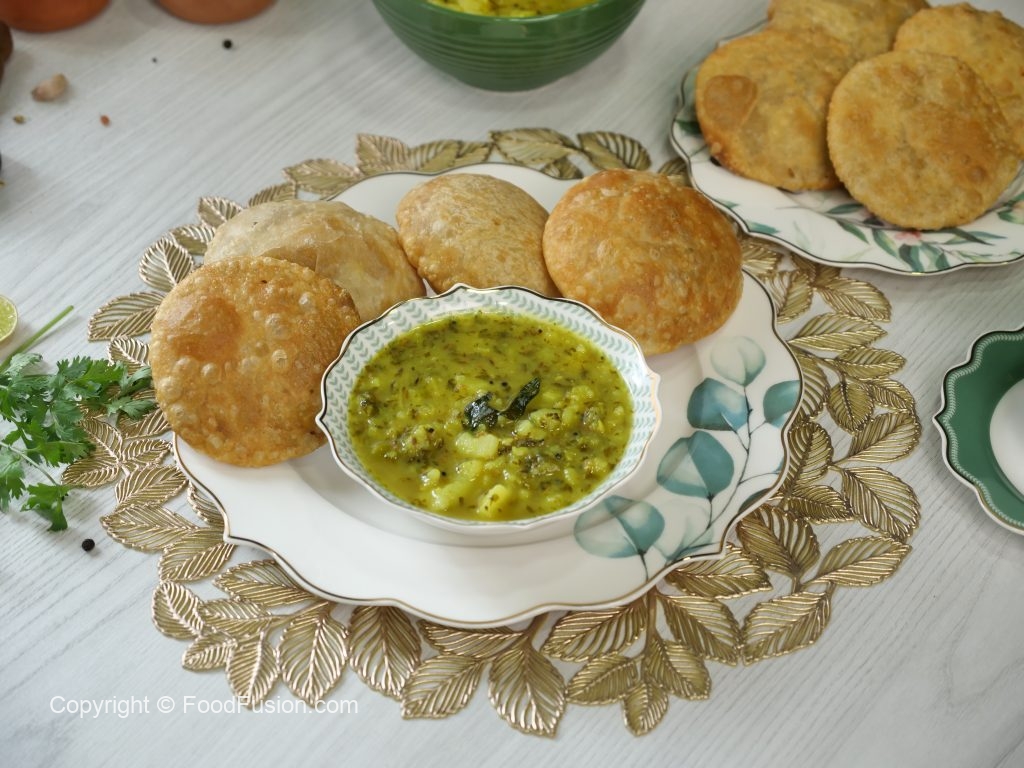 -Serve masala kachori with aloo bharta!