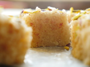 If you are using desiccated coconut,soaked 2 Cups desiccated coconut in ¾ Cup warm milk and set aside for 1 hour.