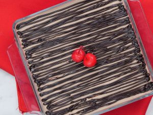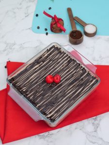 -Decorate with chocolate ganache,cherries & serve chilled!