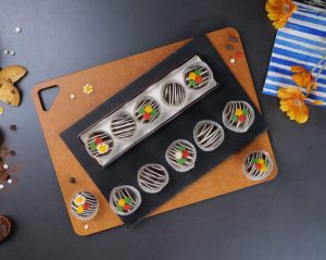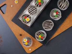 -Drizzle white chocolate & decorate with chocolate flowers & refrigerate until set (makes 12 truffles).