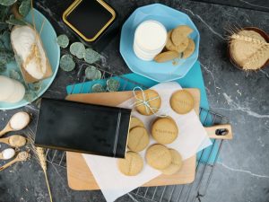 -Baking tary per butter paper laga lein aur cookies rakh ker cookie stamp ki madad sa stamp laga lein (makes 30 biscuits) aur 15 minutes klliya refrigerate ker lein.