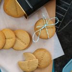 -Place cookies on a baking tray lined with butter paper & stamp them with the help of cookie stamp (makes 30 biscuits) & refrigerate for 15 minutes.