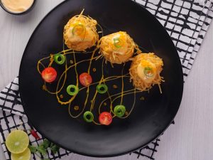 -Ek wok mein cooking oil garam kar lein, medium flame par golden aur crispy hone tak fry kar lein (makes 6).