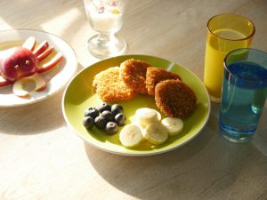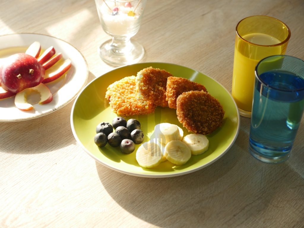 Now dip bread slices into beaten egg then coat in corn flakes.
