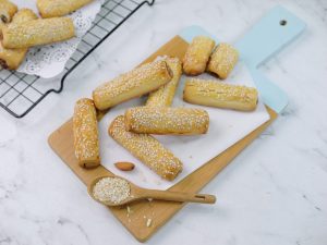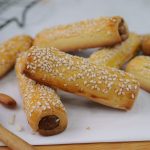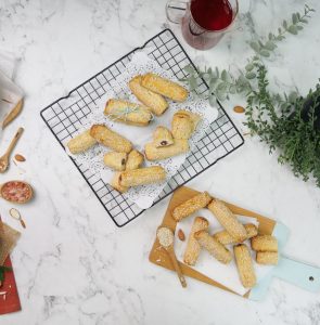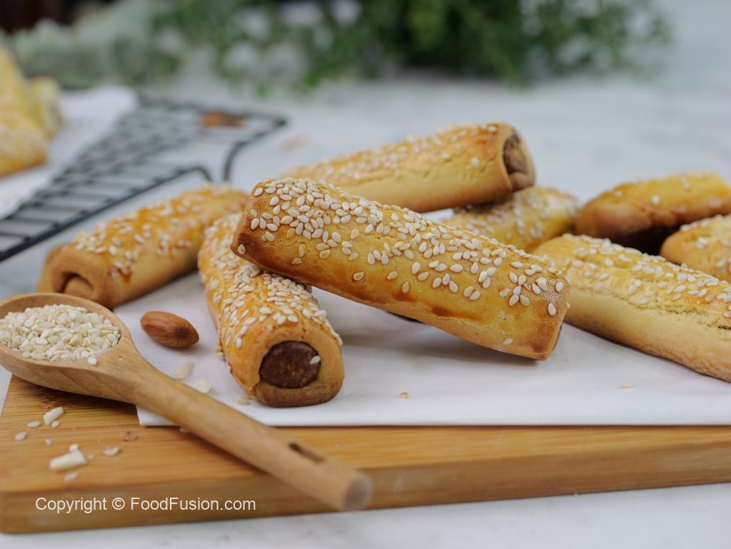 -Place rolled date filling on the dough,roll the dough slightly & seal the edges then cut the dough into 3” finger cookie.