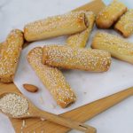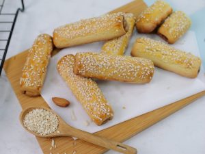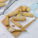 -Apply egg wash on cookies & sprinkle sesame seeds.