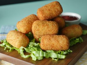 -Now dip in whisked eggs than coat with breadcrumbs (makes 12).