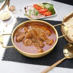 -In a pot,add yogurt,ginger garlic paste,kashmiri red chilli powder,coriander powder,salt,red chilli powder,green cardamom,black peppercorns cloves,fried onion,blended paste,clarified butter,water & mix until well combined.