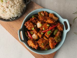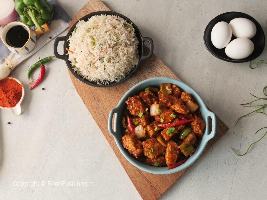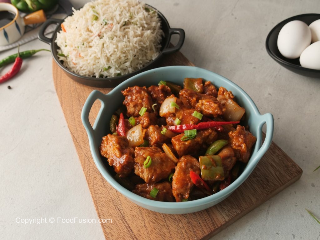 Hara pyaz leaves sa garnish ker lein aur fried rice ka saath serve karein!