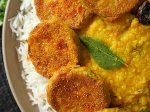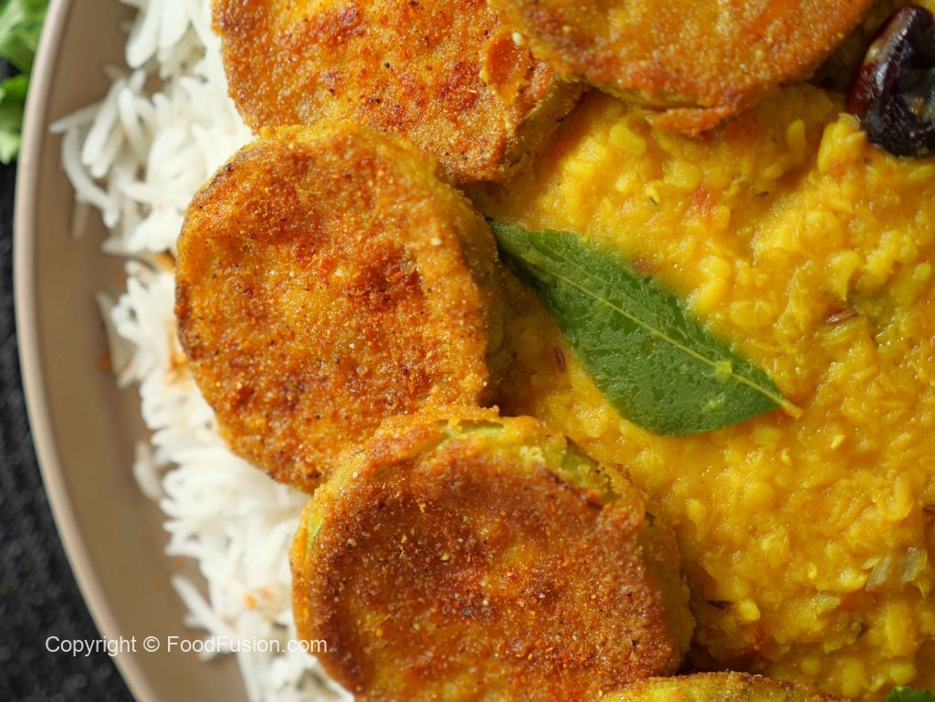 -Tawa per cooking oil garam karein aur slices ko halki ancch per golden & crispy ho janay tak fry karein (4-5 minutes each side).