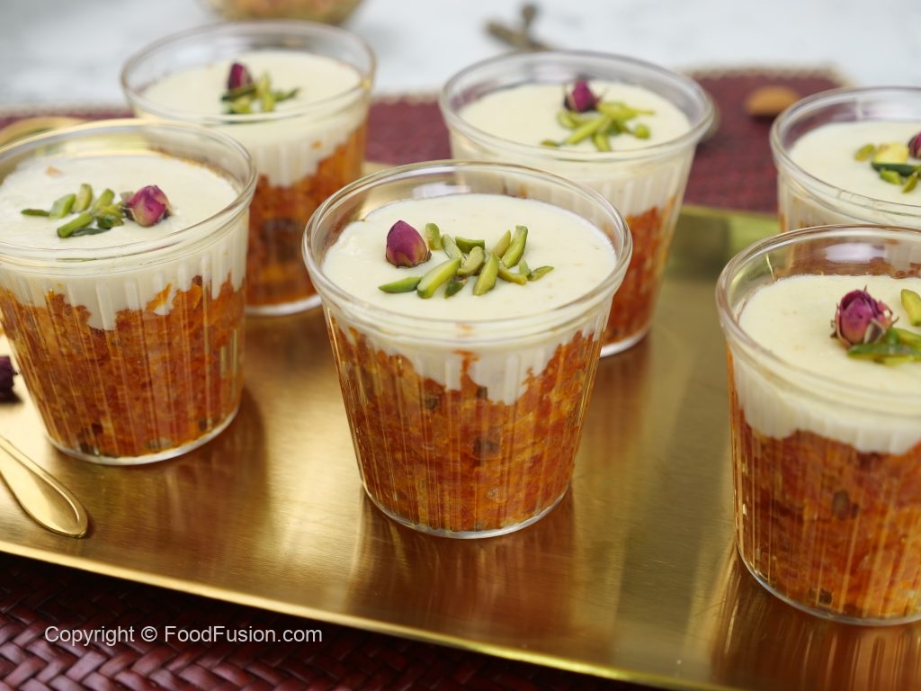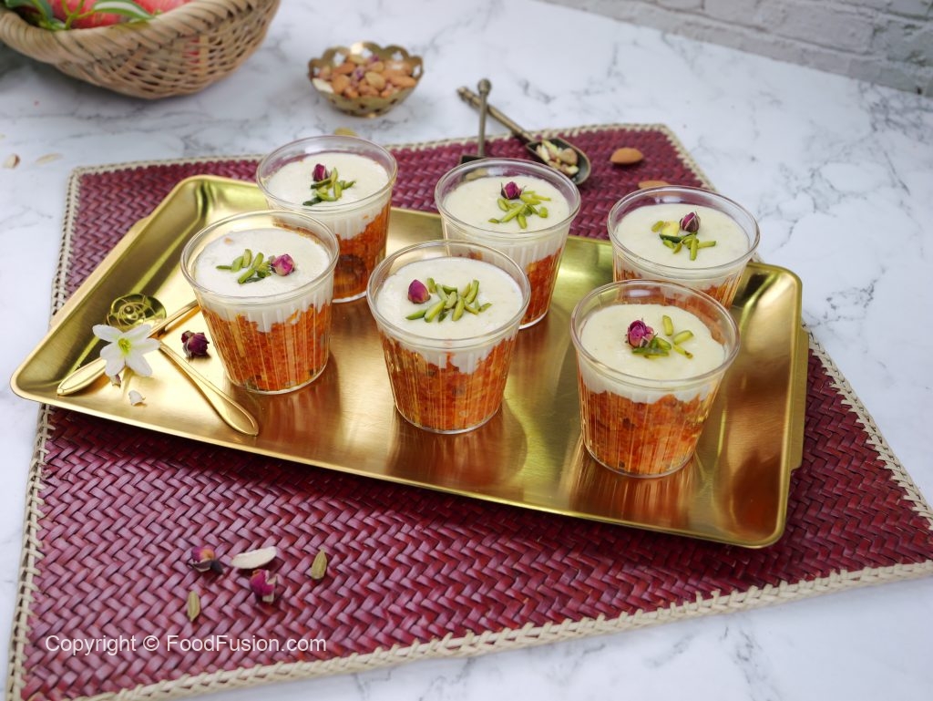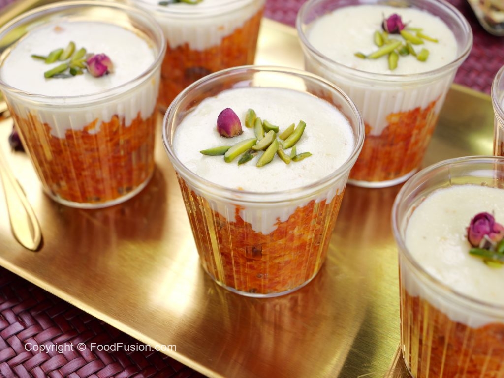 An easy and presentable way to serve gajar ka halwa to guests while managing your portion size. #happycookingtoyou #foodfusion #gajarkahalwa #gajarhalwa #digitalammi #desserts #desifood