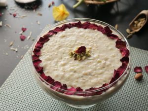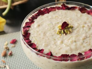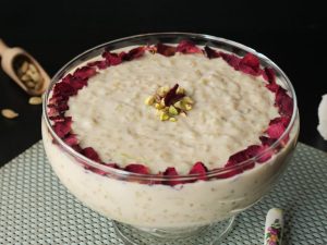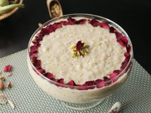 -Garnish with dried rose petals,pistachios & serve chilled!