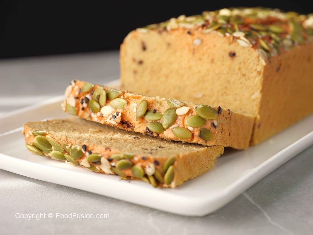 -Pour batter in 8x4 inches bread mould (greased & lined with baking paper),spread evenly & tap few times.