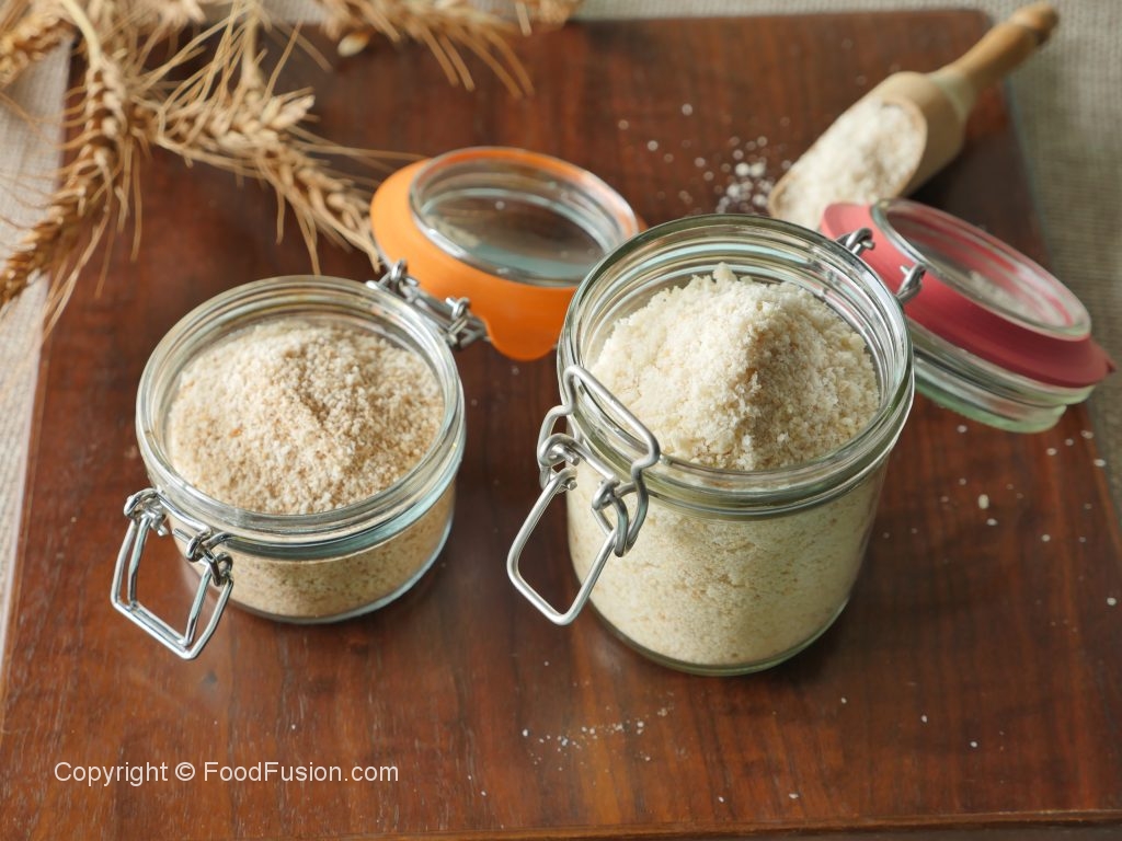 In chopper,add toasted bread slices and chop until crumbled then strain it with strainer.