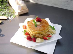-Pour ¼ cup of prepared batter & cook on low flame until bubbles appear on top (1-2 minutes) (1 cup makes 6-7 pancakes depending on size).