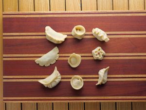 -Make a set of 10 dumpling wraps, place parchment paper in between, place in an air-tight container with a paper towel on top (it will help absorb moisture).