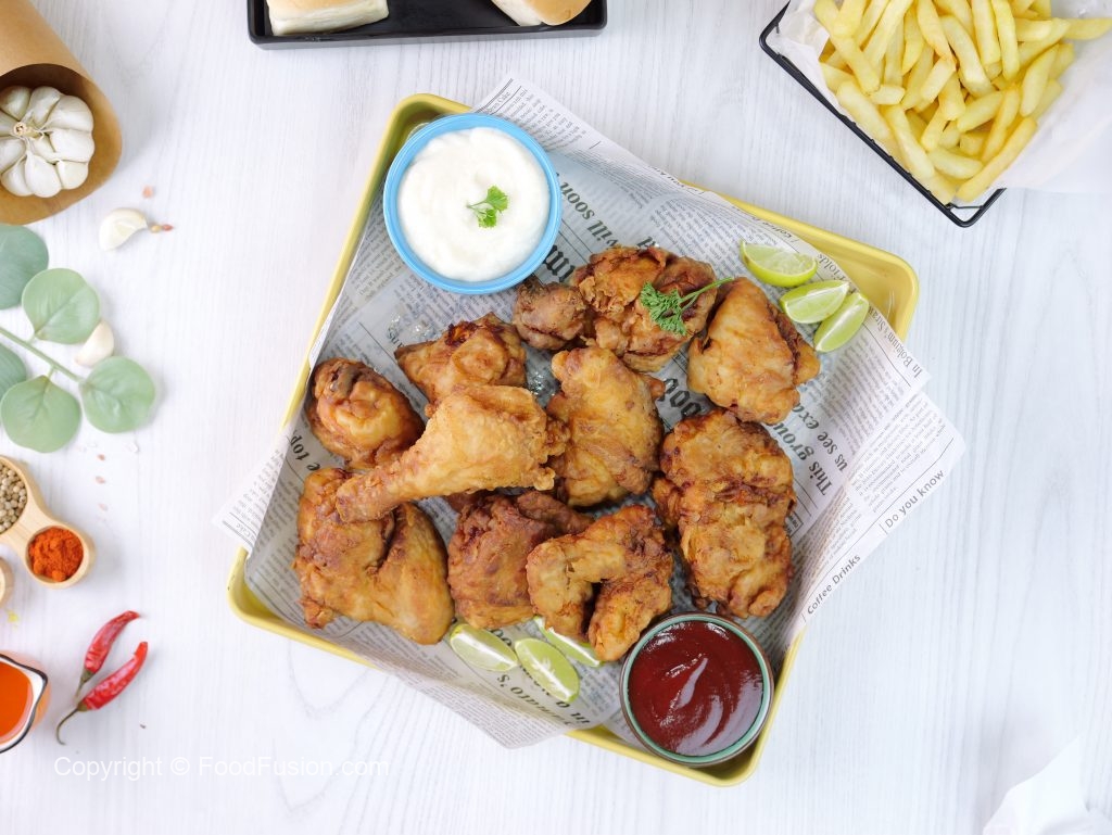 -Karahi mein cooking oil garam karein aur chicken ko halki ancch per golden & crispy ho janay tak fry ker lein (10-12 minutes).