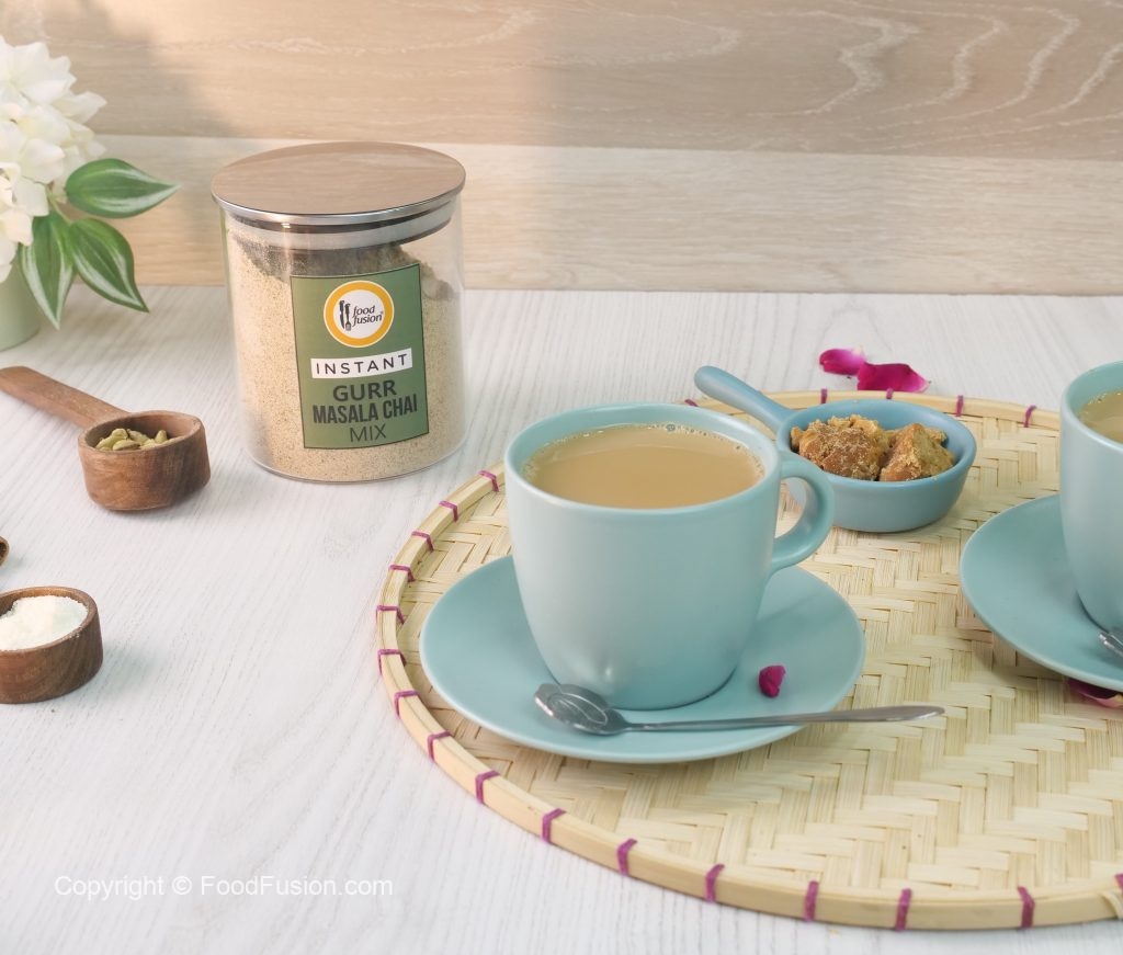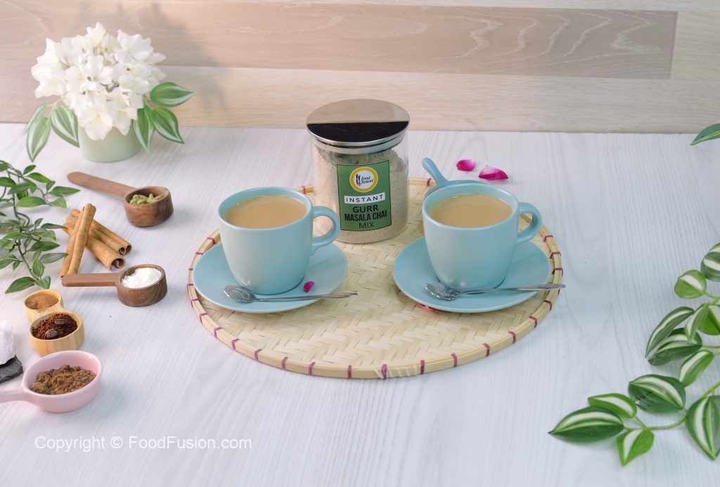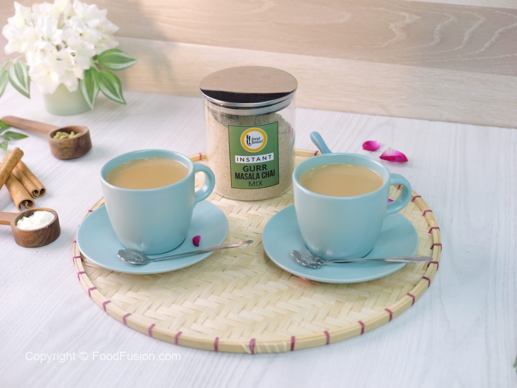 In a jug,add instant gurr masala chai mix (2 tbs),hot water (1 Cup) & mix well,cover & let it rest for a minute,strain & serve!