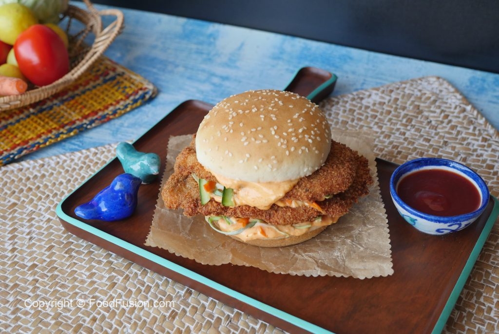 Katsu Fried Chicken Burger, An indulgent treat for you, just what you were missing from restaurants. Now make at home and enjoy #HappyCookingToYou #Dashi #FoodFusion