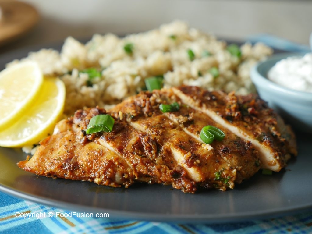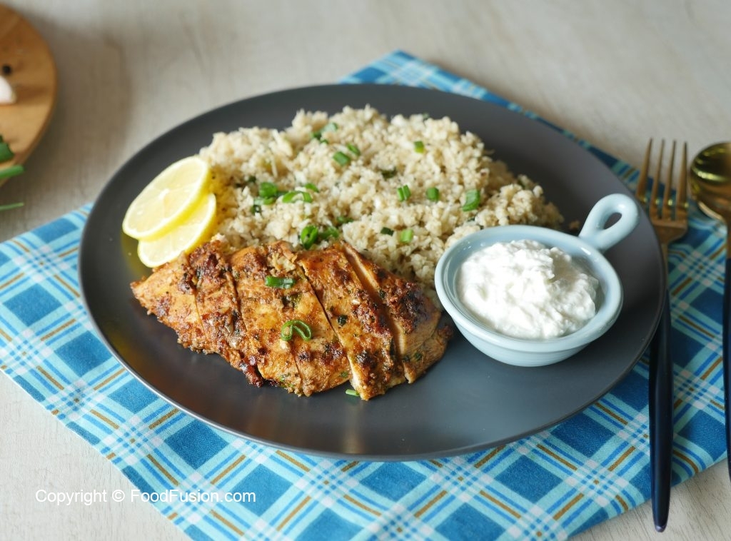 Keto Cauliflower Garlic Rice with Spicy Grilled Chicken