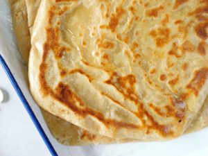 -On heated griddle,place paratha,add clarified butter & cook on medium flame from both sides until done.