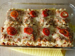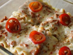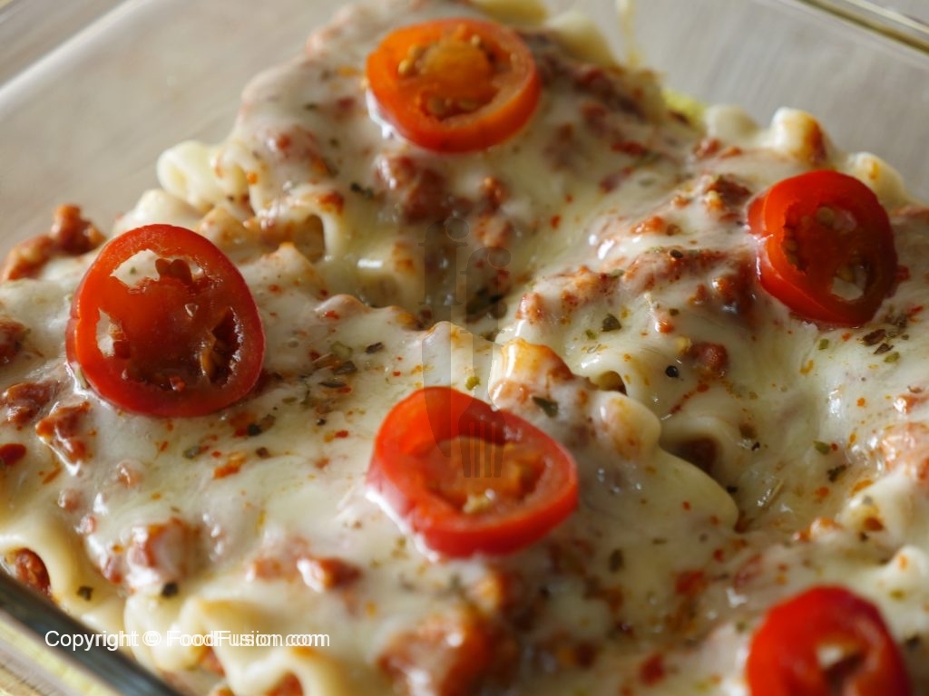 Cover with aluminum foil and bake in preheated oven at 180 C for 15-20 minutes or until cheese melts.