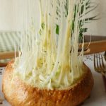 Bread bowl mein mac n cheese pasta,mozzarella cheese,parmesan cheese powder aur fresh parsley dal ker top sa cover ker dein.