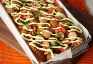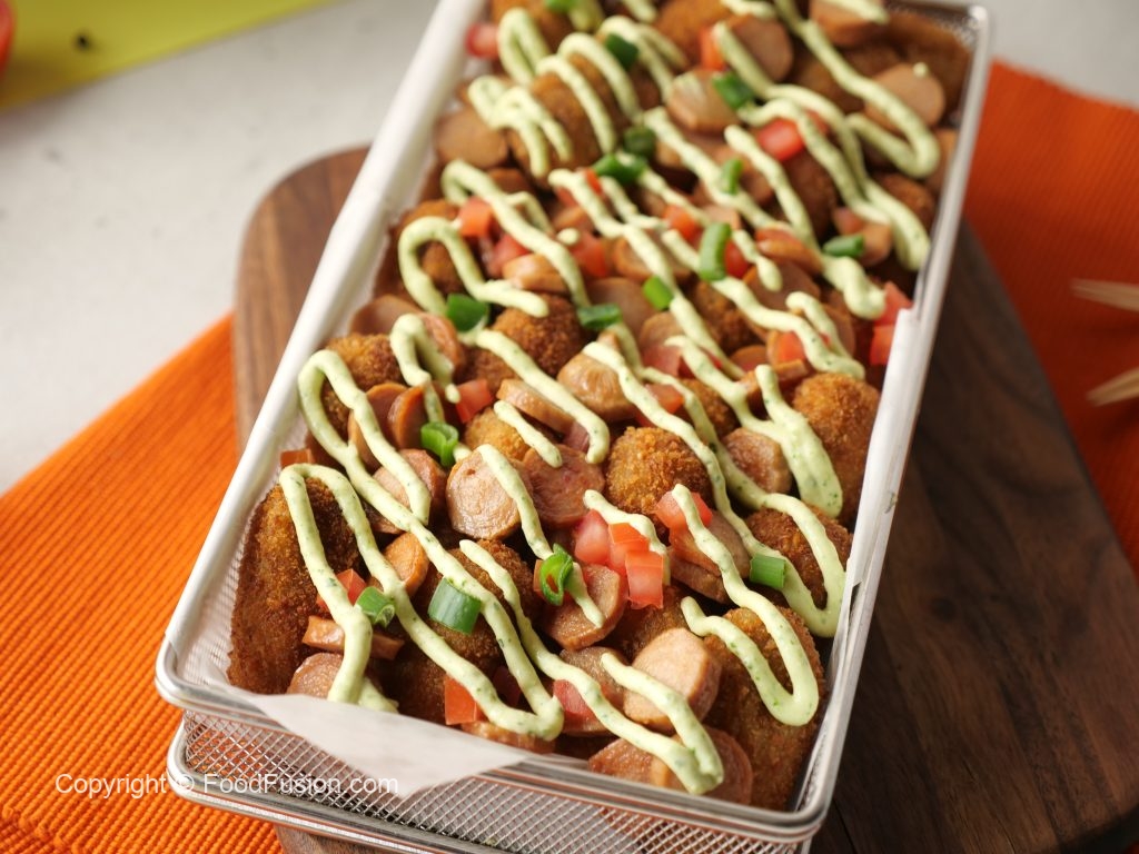 A bed of Loaded Potato Poppers topped with saucy goodness. A perfect recipe to impress the guests. #HappyCookingToYou #FoodFusion